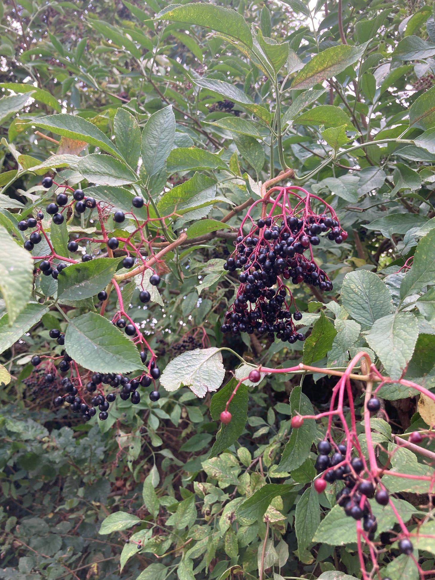 • I’ve seen elderflowers and elderberries growing everywhere and at one point I started to wonder why no one was eating them wild in nature so before inadvertently poisoning myself I googled it. Apparently raw berries “contain poisonous cyanide-producing substances that can cause nausea, vomiting, and severe diarrhea.” Yikes. Thankfully cooking the berries resolves this issue.